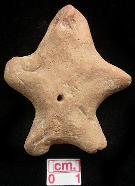 | Description / विवरण | A terracotta archaic human figurine with short head, pinched nose, punched eyes, open mouth, short out stretched arms, short wide bridged stumpy legs, pin hole navel, handmade. |