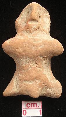 | Description / विवरण | A terracotta archaic male figurine with round head, pinched nose, pin hole eyes, slit open mouth, short out stretched stumpy arms, short wide bridged stumpy legs, phallus indicated, handmade. |