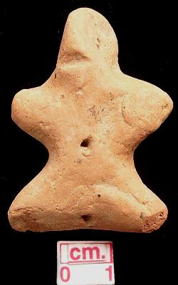 | Description / विवरण | A terracotta archaic human figurine with round head, pinched nose, pin hole eyes, slit open mouth, short out stretched stumpy arms, short wide bridged stumpy legs, pin hole navel, genetic organ indicated by pin hole mark, handmade. |