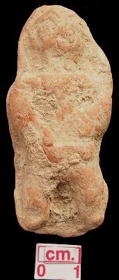 | Description / विवरण | Terracotta human figurine, red in colour, lozenges eyes, open mouth, hands laying on waist, open legs, depression on the ends of leg made by a single mould, badly mutilated. |