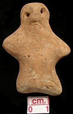 | Description / विवरण | Terracotta archaic human figurine with round head, red in colour, pin hole eyes, pinched nose, open mouth, tiny hands and legs, treated with red wash. |