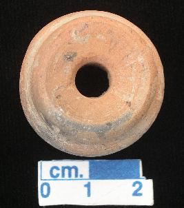 | Description / विवरण | A terracotta ghat-shaped bead, red in colour , aring base top like rim of a ghat, a vertical hole across. |