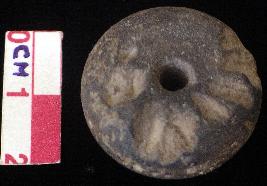 | Description / विवरण | Terracotta areca-nut shaped bead, greyish in colour, flat top. |