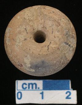 | Description / विवरण | Terracotta red, areca-nut shaped bead, top has a depression around perforation. |