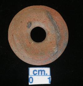 | Description / विवरण | Terracotta, red ghat shaped medium sized spindle-whorl flat base. |