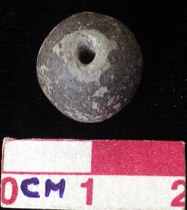 | Description / विवरण | Small terracotta bead, round, greyish. |