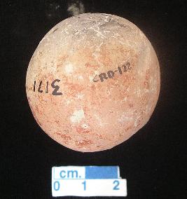 | Description / विवरण | Terracotta, red, sling ball has traces of red slip. |