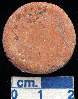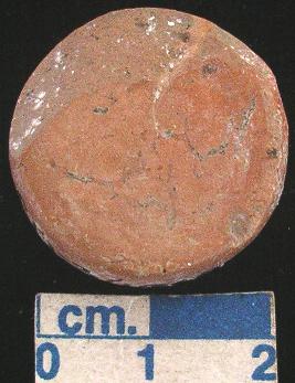 | Description / विवरण | Terracotta disc, small-sized, red, damaged , bearing red slip all around , plain section and both the surfaces are slightly deoressed. |