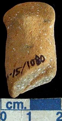 | Description / विवरण | Terracotta bird head with punched beak and applique eyes, has a perforation across the neck. |