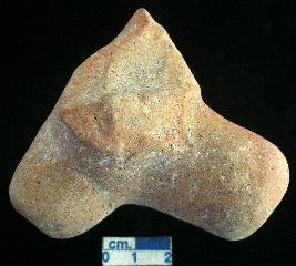 | Description / विवरण | Terracotta Toy Cart Frame, red, damaged, having an across hole for fastening wheels, another perforation in the front. |