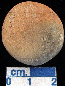 | Description / विवरण | Terracotta disc, small sized , dull red, both the surfaces and sides are plain , ill baked , showing black stains on both the sides, both the surfaces have traces of red slip. |