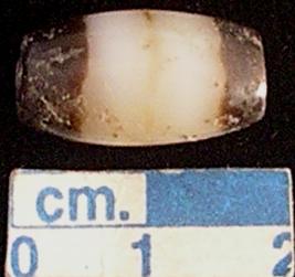 | Description / विवरण | Short barrel shaped bead, made of banded agate. |