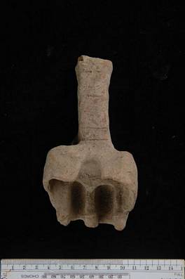 | Description / विवरण | Terracotta object with a long neck stuck on a square pedestal. It resembles a snake. |