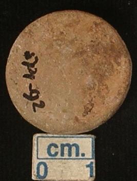 | Description / विवरण | Terracotta disc, small-sized, dull red, made of well-levigated clay, smooth all over, both the surfaces and sides are plain. |