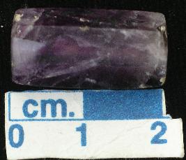 | Description / विवरण | A stone bead, quartz-amethyst hexagonal, stout and cylindrical. |