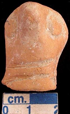 | Description / विवरण | Terracotta head of a bird with appliqu eyes, hand modeled and two grooves on the neck. |
