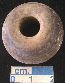 | Description / विवरण | Terracotta ghat-shaped spindle whorle, grey burnished. |