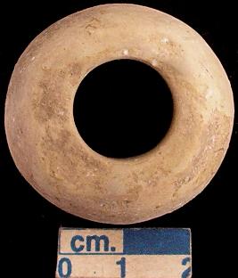 | Description / विवरण | Terracotta ghat- shaped spindle whorl, reddish, flat base. |