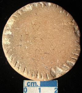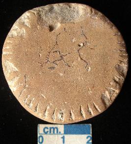 | Description / विवरण | Terracotta disc, reddish, made of well-levigated clay, plain sides both the surfaces have notches on the periphery. |