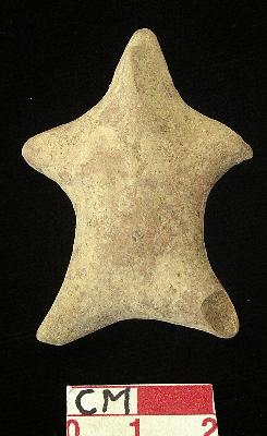 | Description / विवरण | A tiny star shaped terracotta archaic human figurine, with tiny pointed head,dull red, hand made, pinched nose, mouth, short out stretched stumpy arms, pin hole navel, short wide bridged stumpy legs, traces of red slip on exterior. |