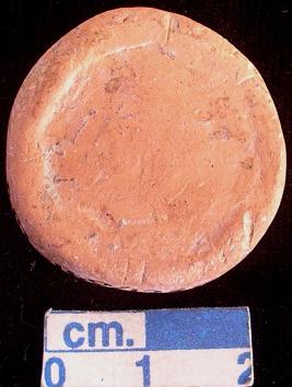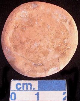 | Description / विवरण | Terracotta disc, small-sized, reddish and has traces of red slip all over, made of well-levigated clay, plain and around both surfaces has slightly raised edges. |