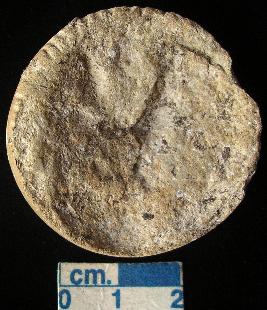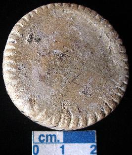 | Description / विवरण | Terracotta disc, dull red, one surface is damaged, plain sides, one surface has vertical notches on the periphery and the other has evidence of similar notches on the periphery. |