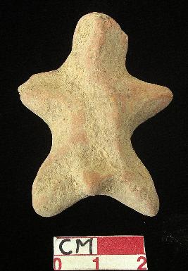 | Description / विवरण | A star shaped terracotta archaic male figurine, with round head, red, hand made, pinched nose, open slit mouth, short out stretched stumpy arms, short wide bridged stumpy legs, phallus indicated. |