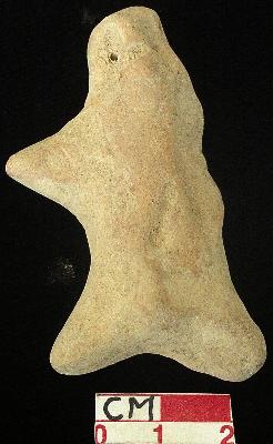 | Description / विवरण | A terracotta archaic male figurine with elongated head, punched eyes, pinched nose, slit mouth, out stretched stumpy right arm is intact whereas left is missing, phallus indicated, short wide bridged stumpy legs, dull red, devoid of any surface treatment, handmade. |