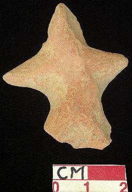 | Description / विवरण | A terracotta archaic human figurine with pinched and conical head, out stretched stumpy arms, both wide bridged stumpy legs are damaged, treated with red wash, handmade. |
