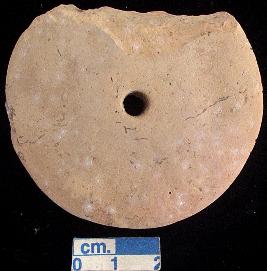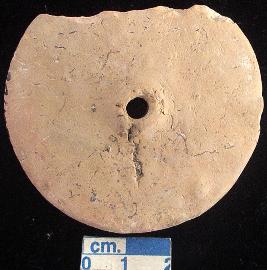 | Description / विवरण | Fragment of terracotta Wheel, bi-convex surfaces showing hub outside. |