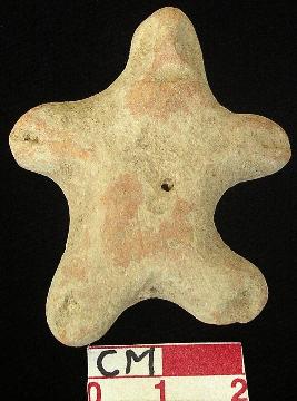 | Description / विवरण | A terracotta archaic human figurine with round head, punched eyes, pinched nose, open slit mouth, out stretched stumpy arms with one incised line in each punched navel, wide birdged stumpy legs with one incised line in each, treated with red wash, handmade. |