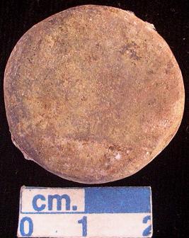 | Description / विवरण | Terracotta disc, small-sized, red, ill-baked, made of well-levigated clay, plain surface and sides. |