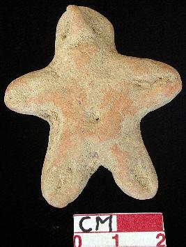 | Description / विवरण | A terracotta archaic human figurine with elongated head, punched eyes, pinched nose, open slit mouth, out stretched stumpy arms with one incised line in each, punched navel, wide bridged stumpy legs with one incised line in each, treated with red wash, handmade. |