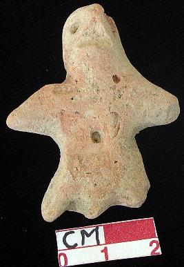 | Description / विवरण | A terracotta archaic male figurine with round head, punched eyes, pinched nose, open slit mouth, pointed out stretched stumpy arms but left is slightly damaged, punched navel, pointed and short wide bridged stumpy legs but left is slightly damaged, treated with red wash, handmade. |