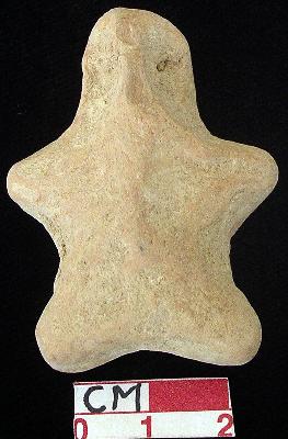 | Description / विवरण | A terracotta archaic human figurine with round head, punched eyes, pinched nose and slit mouth, short out stretched stumpy arms, punched navel, short wide bridged stumpy legs, treated with red wash, handmade. |