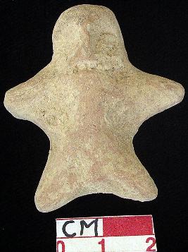 | Description / विवरण | A star shaped terracotta archaic human figurine with round head, pinched nose, slit mouth, out stretched stumpy arms, short wide bridged stumpy legs, treated with red wash, handmade. |