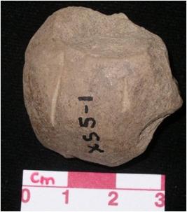 | Description / विवरण | Fragment of a sling ball, broken, grey in colour, handmade. |