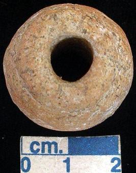 | Description / विवरण | Terracotta ghat-Shaped bead, dull red slightly damaged. |