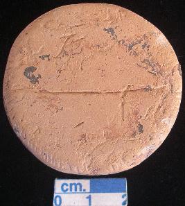 | Description / विवरण | Terracotta disc, disc red, traces of red slip, both the surfaces bear incised arrow each and notches on the periphery. |