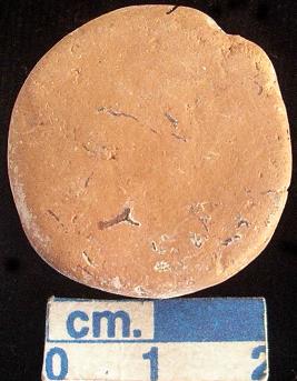 | Description / विवरण | Terracotta disc, small-sized, reddish, irregular circular, both the surfaces and sides are plain. |