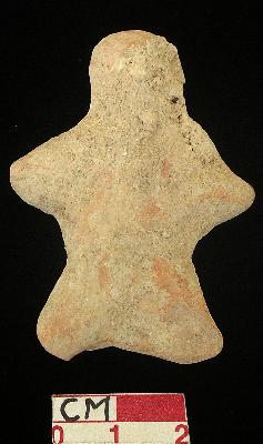 | Description / विवरण | A star shaped terracotta archaic human figurine, with round head, red, hand made, pin hole eyes, pinched nose, open slit mouth, short out stretched stumpy arms, short wide bridged stumpy legs, treated with red wash. |