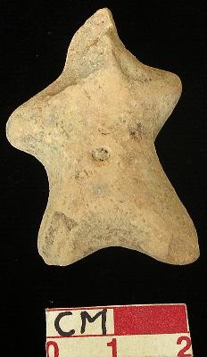 | Description / विवरण | A terracotta archaic human figurine with short head, punched eyes, pinched nose, short out stretched stumpy arms, punched navel, short wide bridged stumpy legs, red colour, handmade. |
