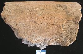 | Description / विवरण | Fragment of a terracotta quern with small stone studded teeth on the upper surface. |