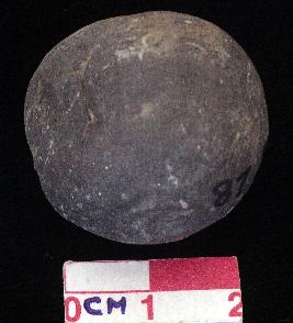 | Description / विवरण | An intact terracotta marble, grey in colour. |