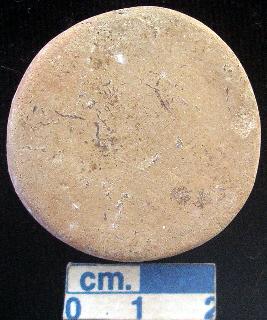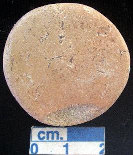 | Description / विवरण | Terracotta disc, medium- sized, reddish, both the surfaces and sides are plain, slightly damaged. |