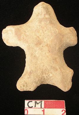 | Description / विवरण | A terracotta archaic human figurine with round head, punched eyes, pinched nose and mouth, short out stretched stumpy arms but left is slightly broken, small wide bridged stumpy legs, dull red colour, handmade. |