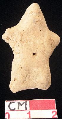 | Description / विवरण | A terracotta archaic human figurine with short head, punched eyes, pinched nose and slit open mouth, short out stretched stumpy arms, punched navel, short wide bridged stumpy legs, dull red colour, handmade. |