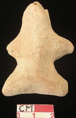 | Description / विवरण | A terracotta archaic human figurine with damaged head, pinched nose, short out stretched stumpy left arm but right is slightly broken, short wide bridged stumpy legs, red colour, handmade. |