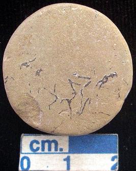 | Description / विवरण | Terracotta disc, small-sized, reddish, both the surfaces and sides are plain, wash is being pealed off. |