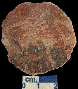| Description / विवरण | Pottrey hopscotch of red ware, circular, treated with red slip. |